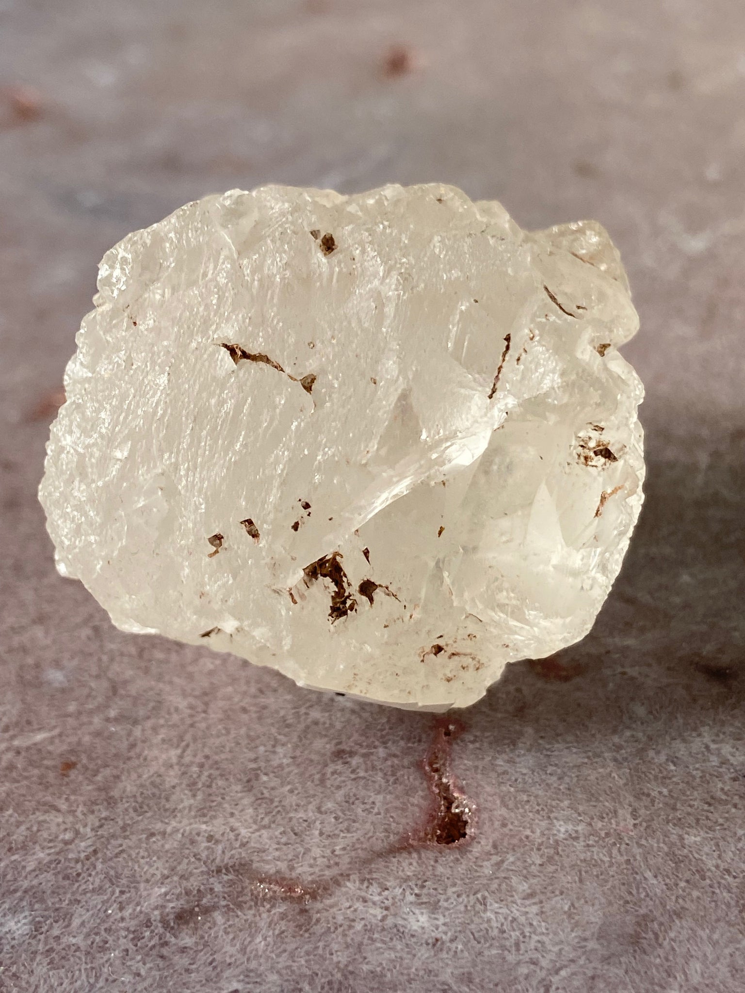 Nirvana quartz or Himalayan ice crystals are rare growth interference quartz crystals that were found in 2006 at 18,000ft elevation due to receding glaciers that exposed them for the first time since before the ice age. They often contain record keepers and deep indented trigonic record keepers and many have a pink colour due to inclusions.
