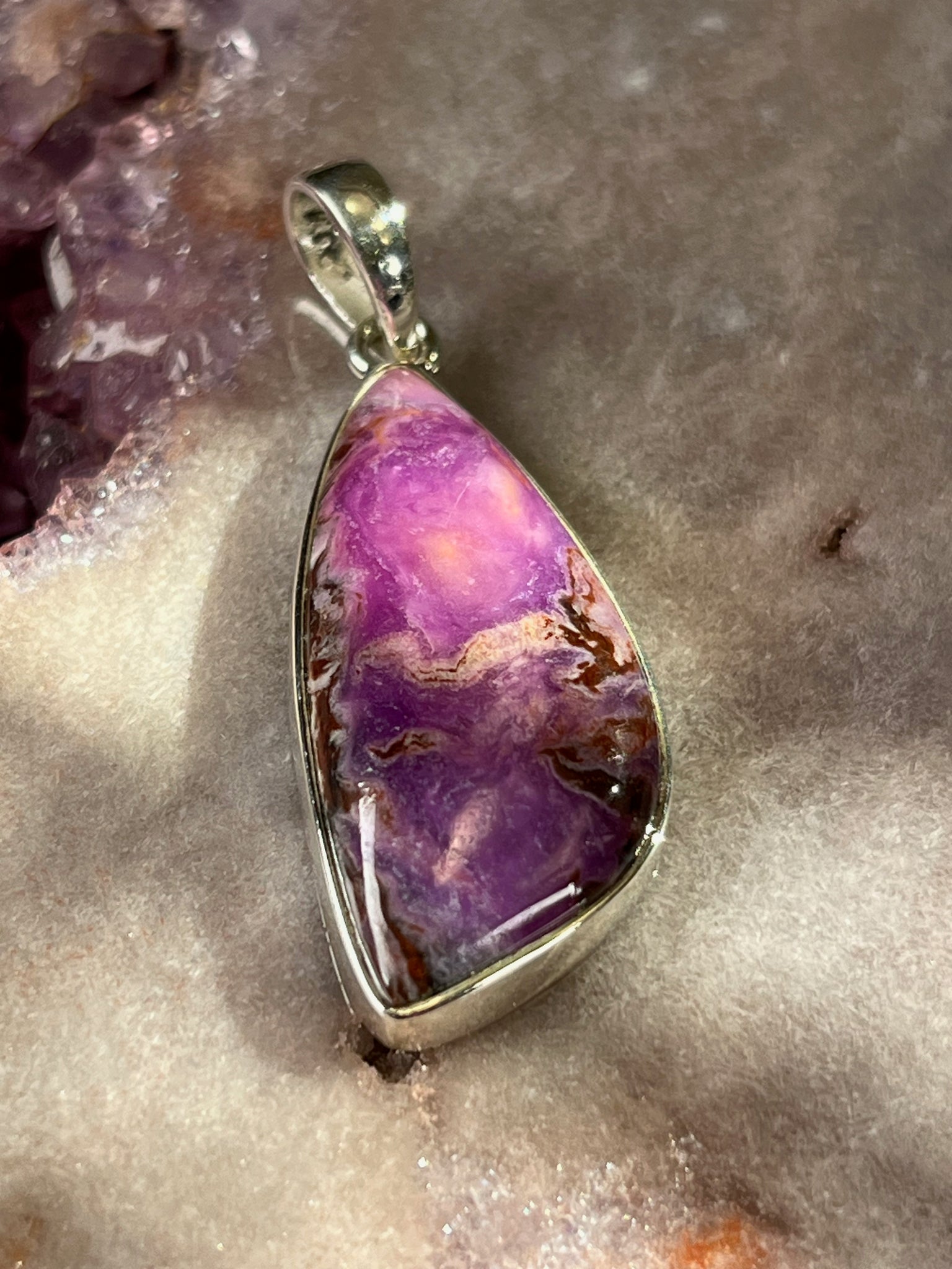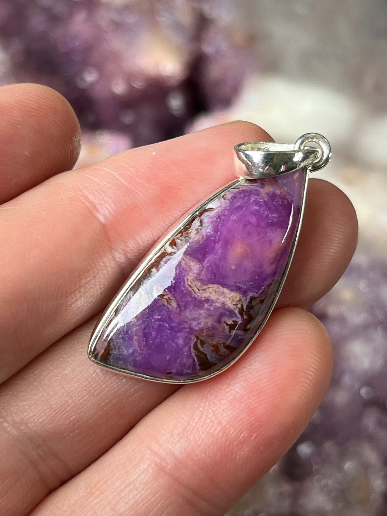 Gel sugilite pendant in sterling silver. Hancrafted in Bali