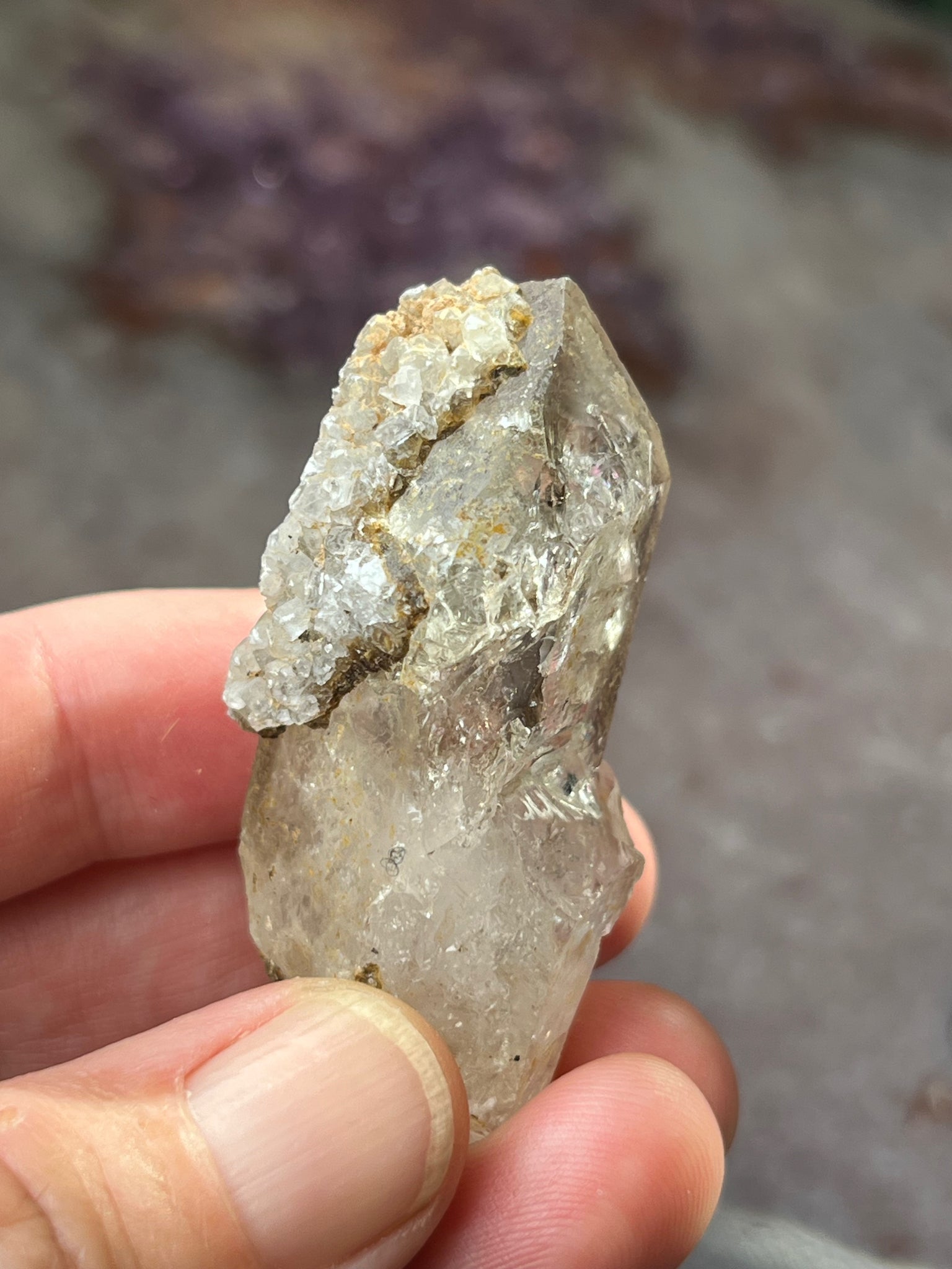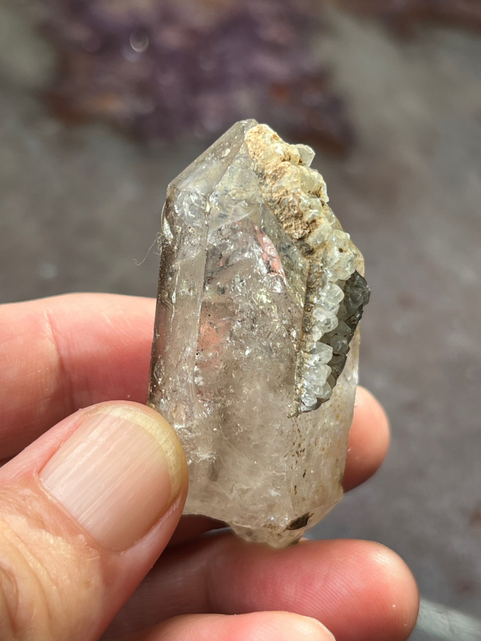 Smokey quartz the from the Goboboseb Mountains in Namibia with druzy quartz